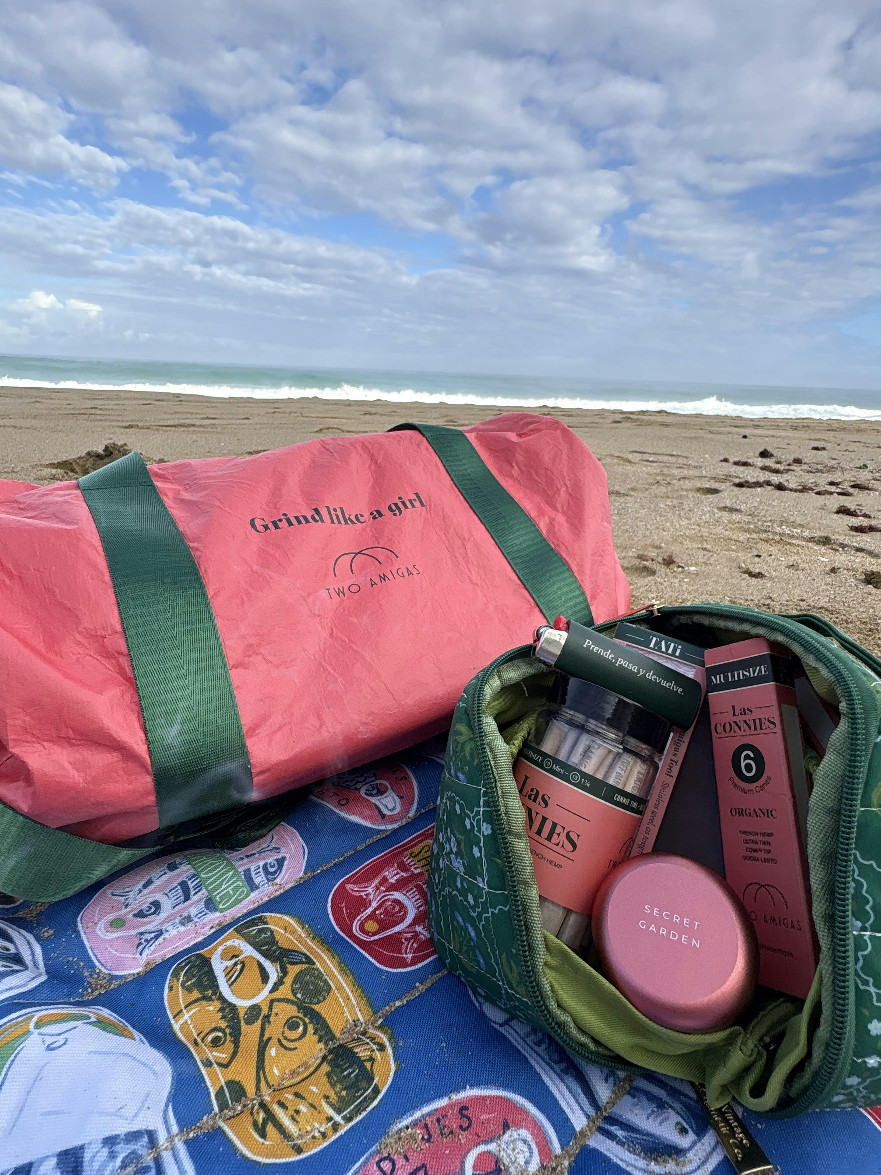 The Retro Bag takes you back to the 70s with a bold coral-and-green palette while solving today’s needs. Built from premium Tyvek, it’s lightweight, durable, water-resistant, and stylish enough to carry anywhere. Three stash pockets lined with Carbon Tech discreetly lock in odors— perfect for keeping your essentials fresh and secure. And because Two Amigas always mixes function with attitude, the Retro Bag proudly carries our punchy mantra: “Grind Like a Girl. Our community needs a bag to complement any fit. They hit the gym, the beach, the airport and everything in between. The Retro Bag fits the real essentials with flare.